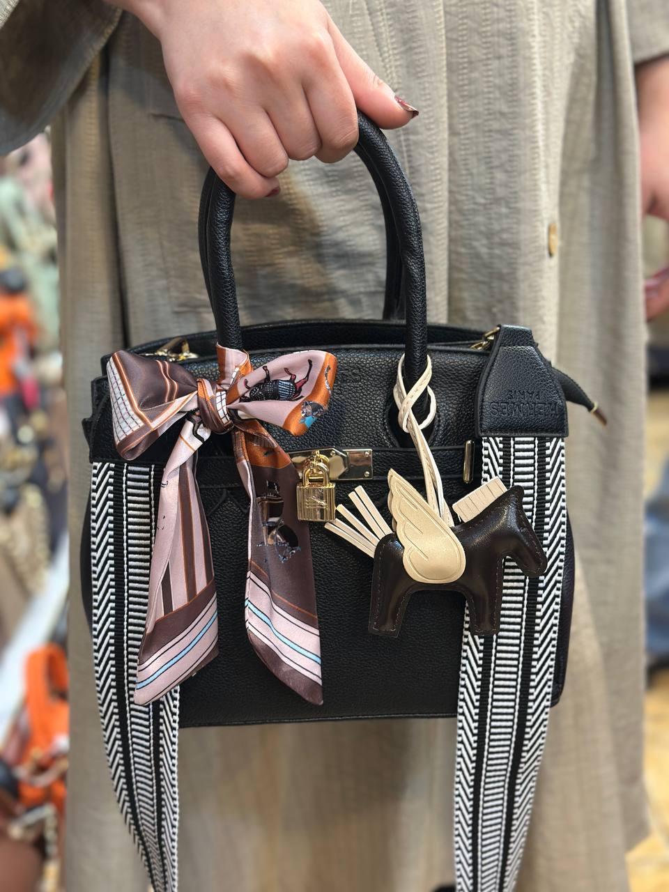 کیف هرمس با بند پهن و اسکارف مشکی