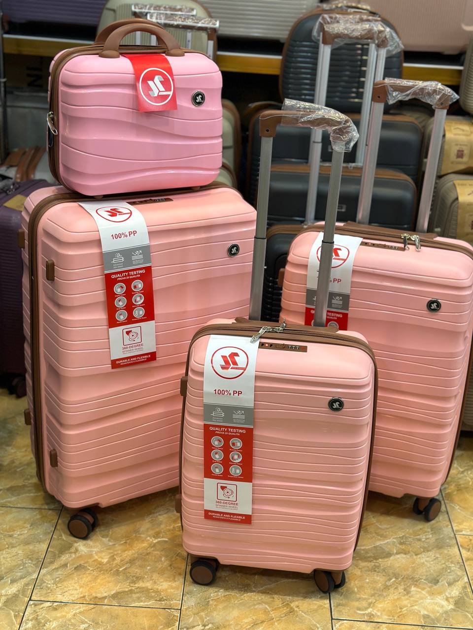 چمدان چهارتیکه نشکن اقتصادی رنگ صورتی